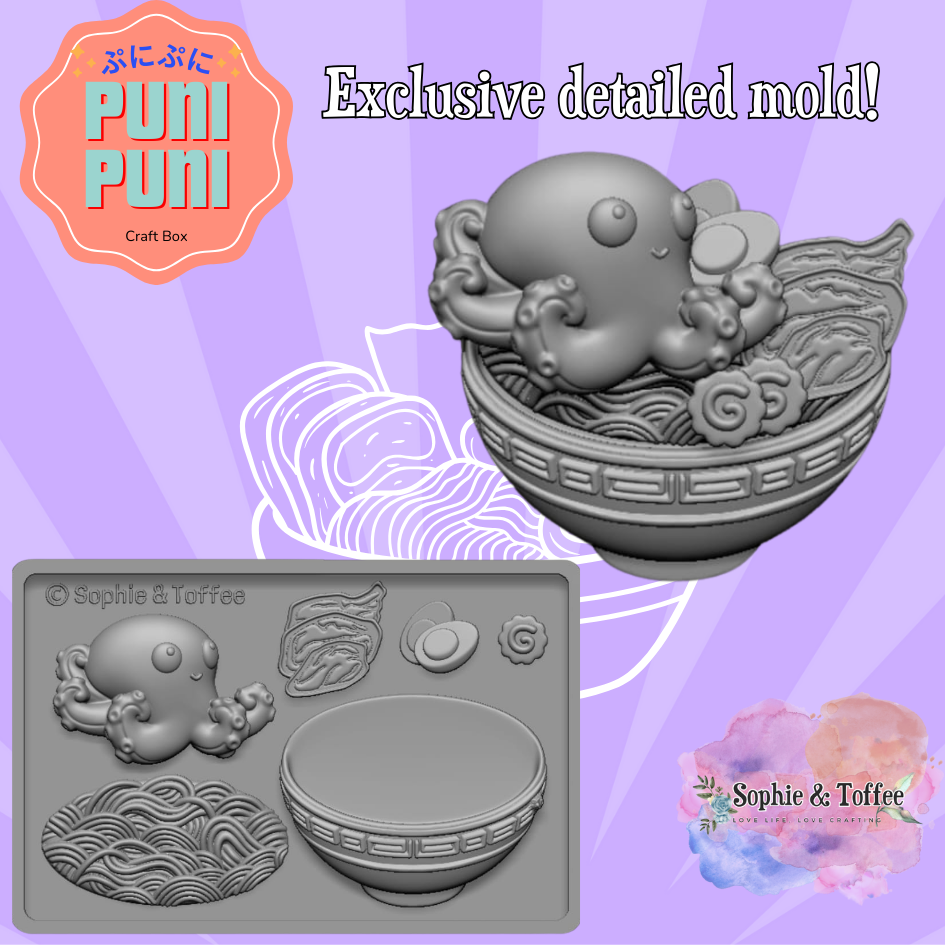 This Puni Puni Box Features our super cute exclusive Octopus Ramen Theme Box design, you will be able to make different color designs of realistic Octopus Ramen Box for your own creation preference.